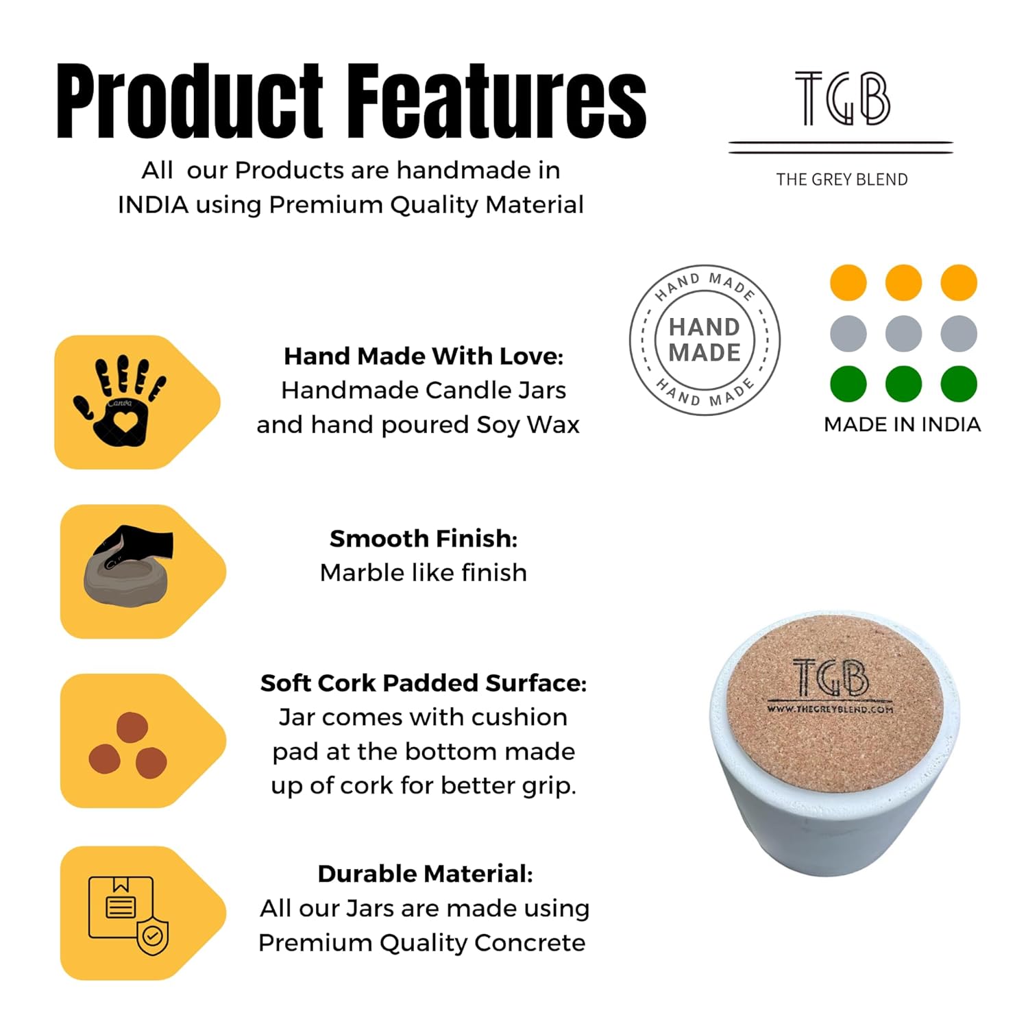 Be the first to review “THE GREY BLEND® Aesthetic Soy Wax Candles in Luxury Concrete Jar with Lid, 20+ Hrs Burn Time, White Chocolate Scent, Perfect for Home Fragrance, Dinner, Bedroom, Bathroom, Christmas, Diwali & Gifting” Cancel reply