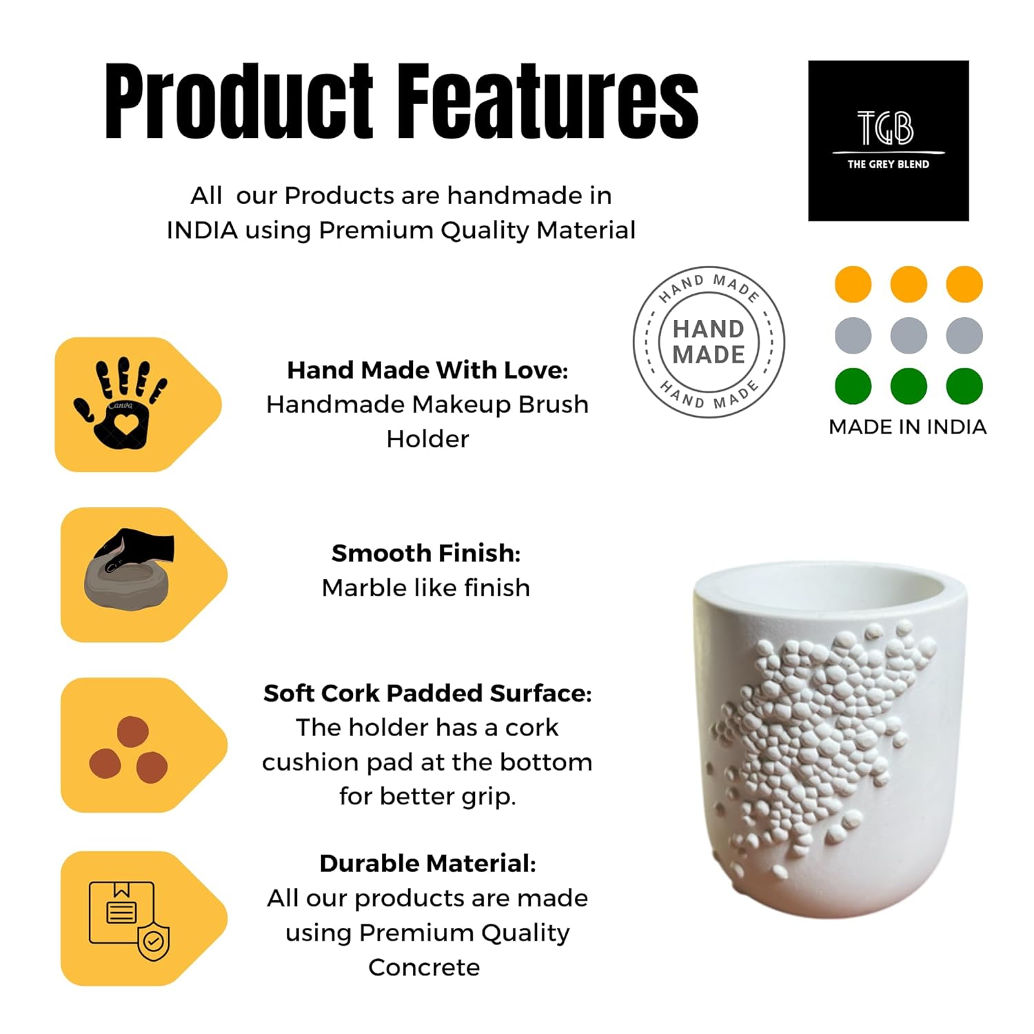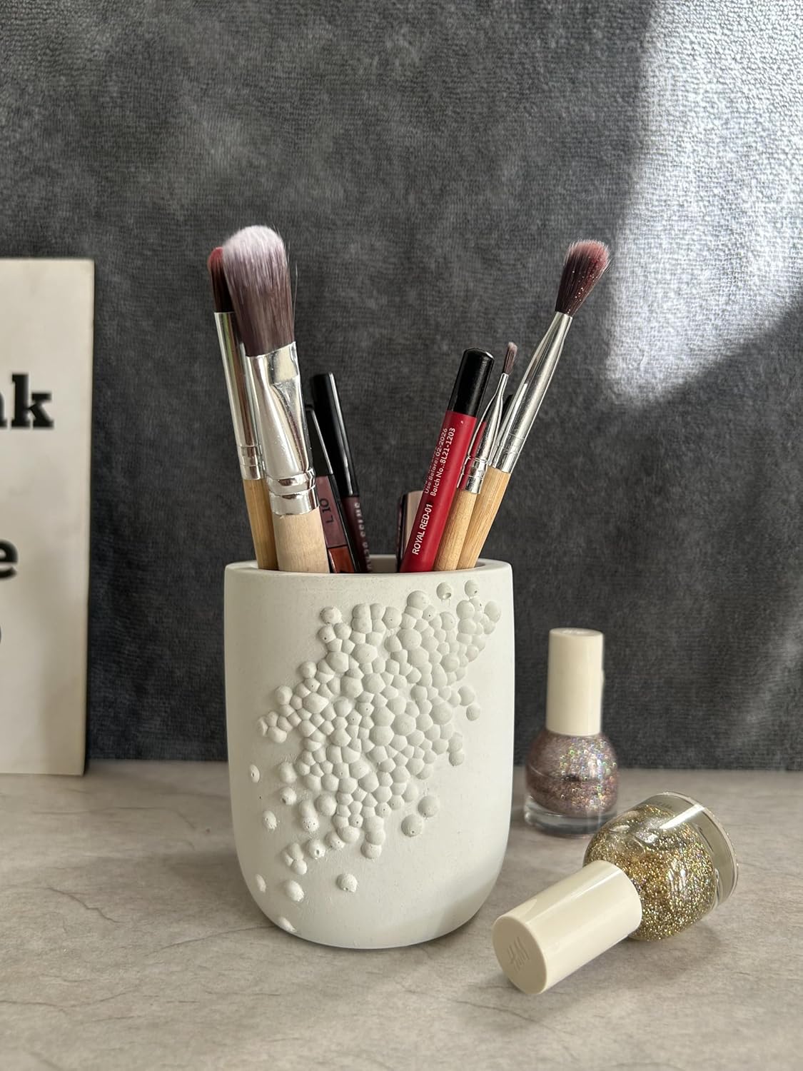 - Package Includes: 1 Multipurpose Concrete Holder (9.5 cm h, 8 cm w), designed for organizing brushes, pens, and toothbrushes on your vanity or desk.